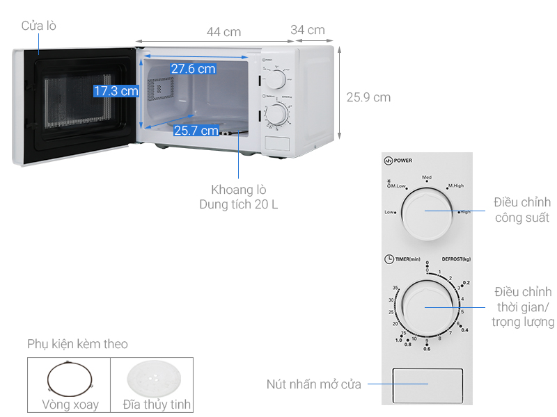 - Loại lò:Lò vi sóng không nướng
